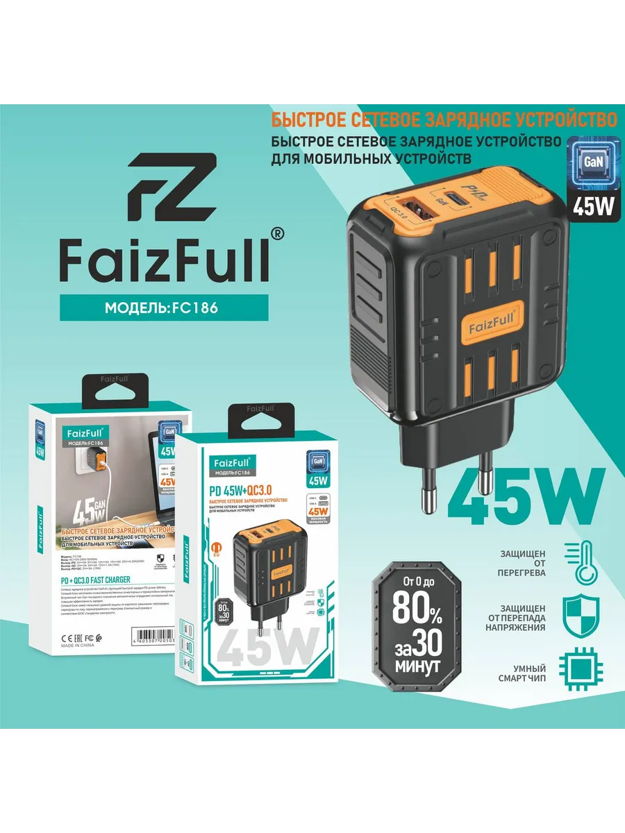 Быстрое сетевое зарядное устройство FaizFull FC 186