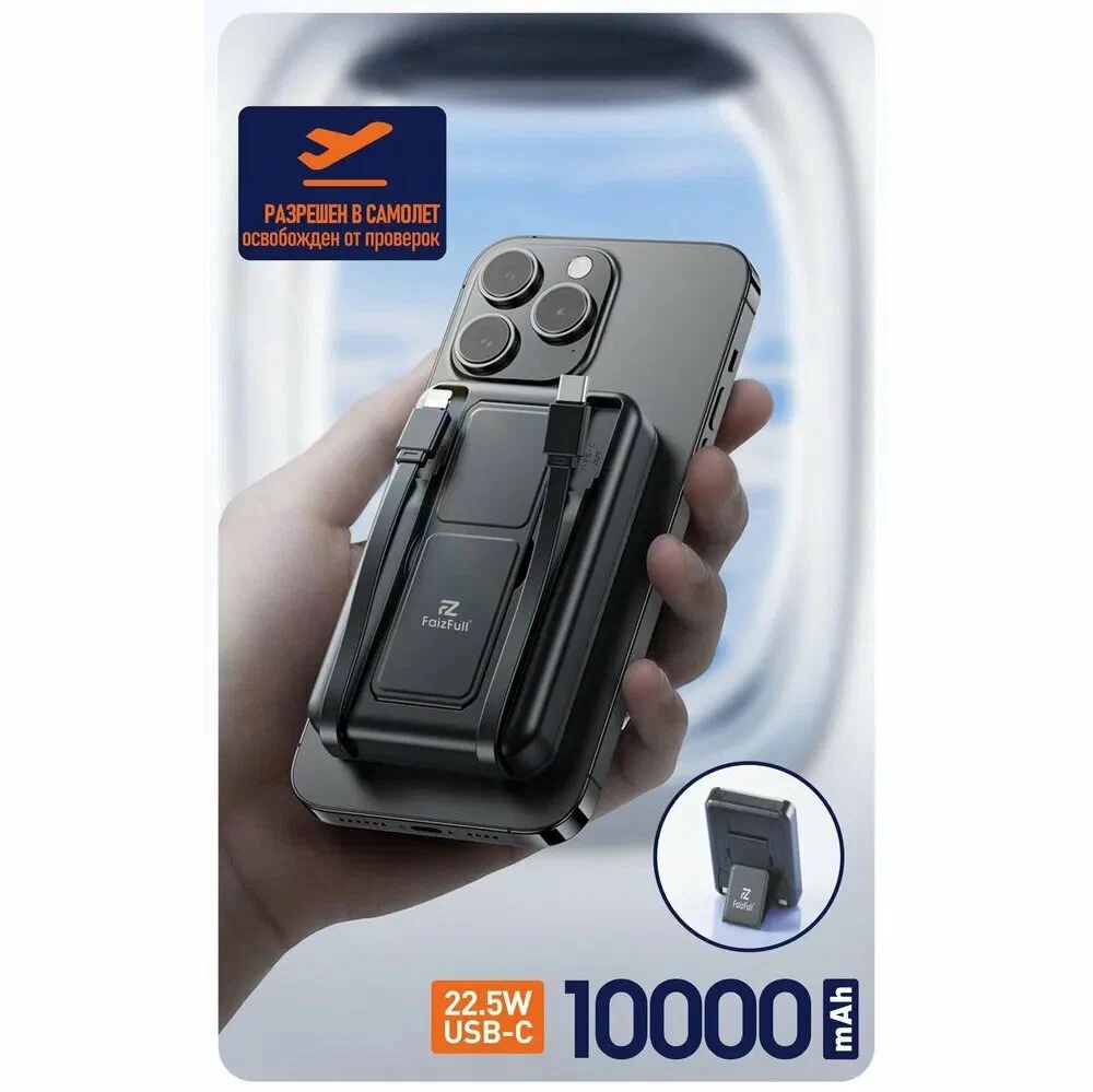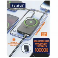 Магнитный аккумулятор с беспроводной и проводной зарядкой MagSafe, 22.5Вт, 10000мАч