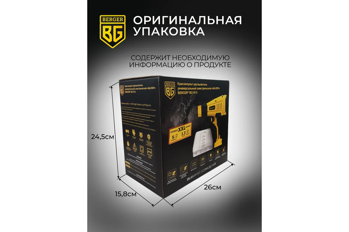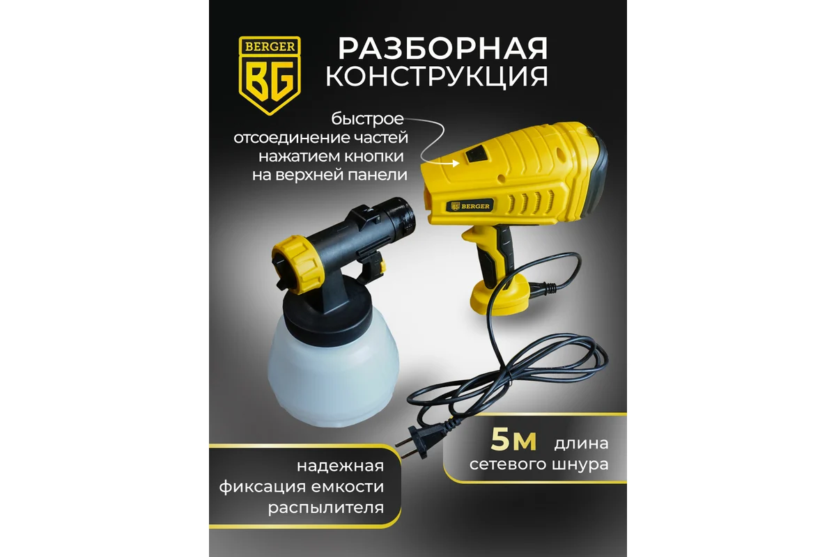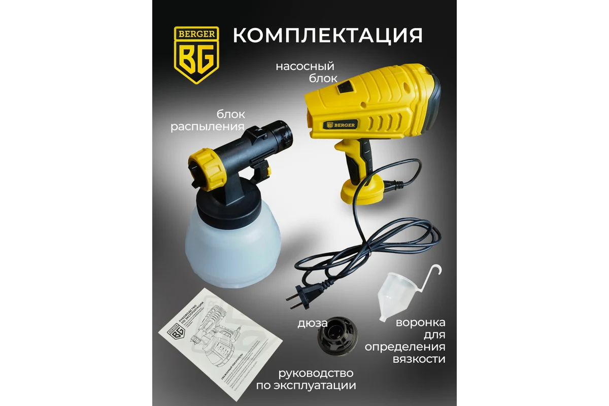 Электрический универсальный краскопульт BERGER Малер 550 ВТ, 1.2 л/мин BG1413