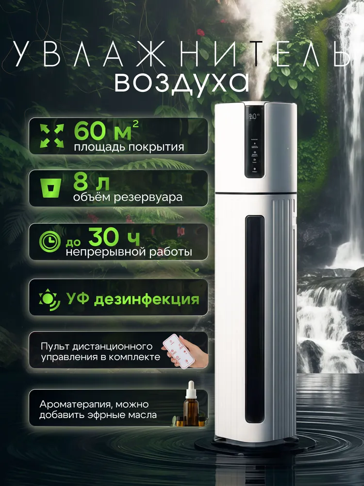 ✔Площадь покрытия 60кв.м. ✔Объем 8л ✔Аромадиффузор ✔УФ дезинфекция