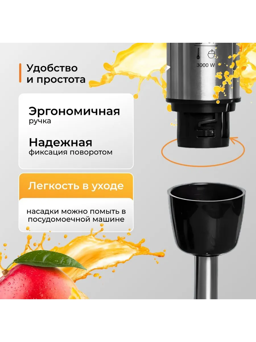 Совместимость: предназначен для смешивания ингредиентов для смузи, супов, молочных коктейлей, теста, фарша, твердых фруктов и овощей.
